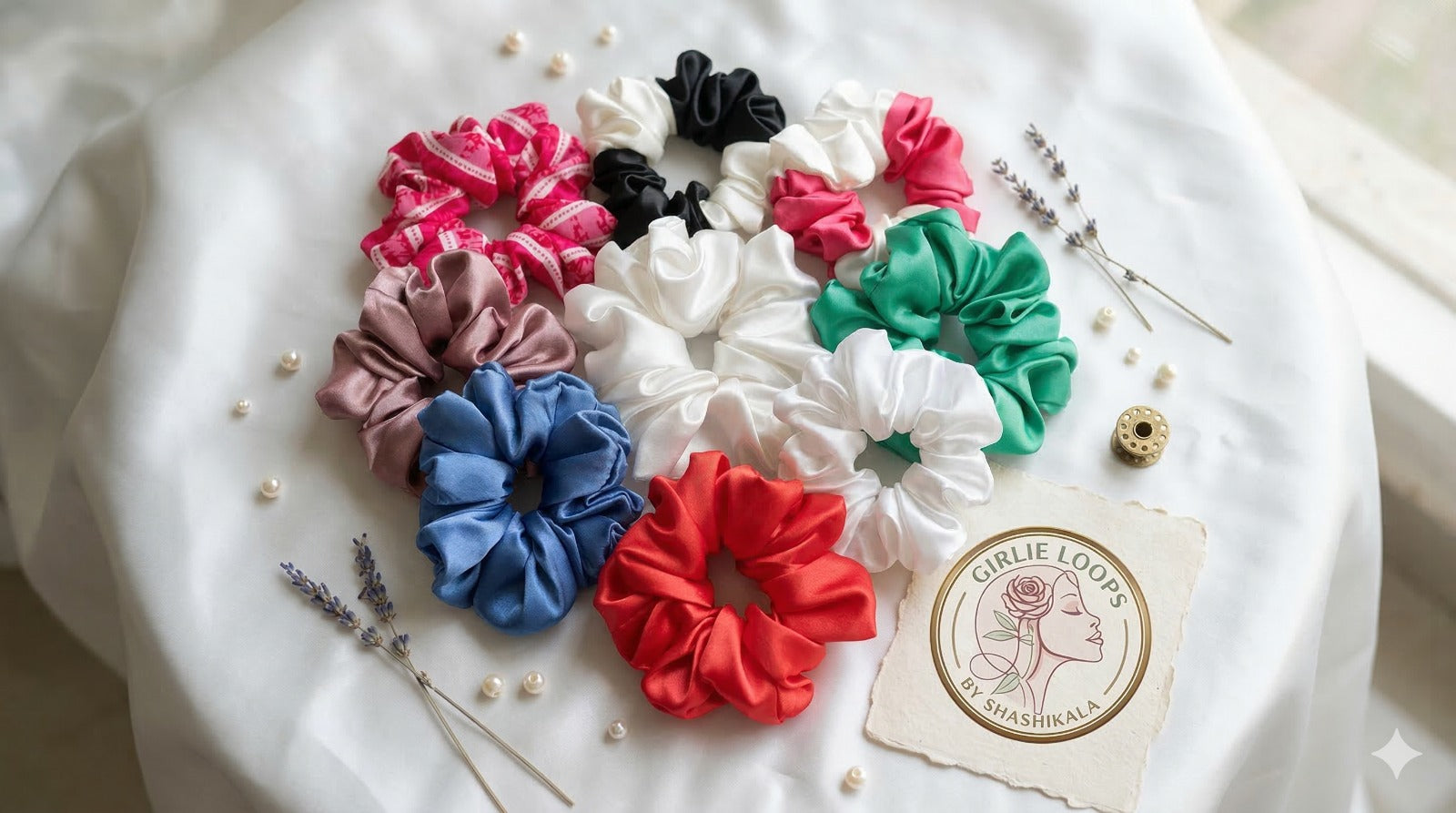 "Discover scrunchies that are as unique as you are! At Girlie Loops, we create fun, stylish, and gentle hair accessories that add a touch of charm to every hairstyle."